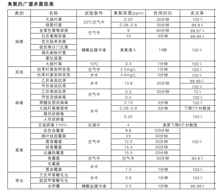 臭氧是目前已知的一種廣譜、高效、快速、安全、無(wú)二次污染的殺菌氣體,可殺滅細(xì)菌芽胞、病毒、真菌等,并可破壞肉桿菌毒素。