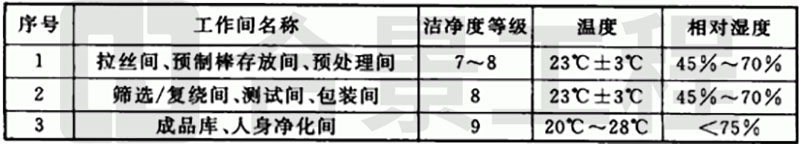 1 光纖廠房的潔凈度等級和溫度、相對濕度參數(shù)應符合表4.1.5的規(guī)定。