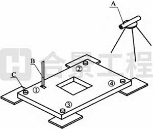1 裝上標準棒后,在圖8.8.3所示位置用百分表檢測標準棒,垂直度允許偏差應為±0.1mm/m。