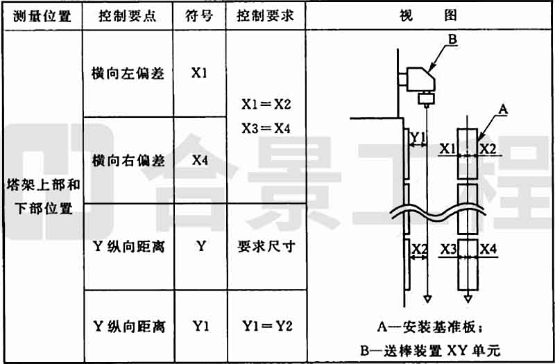 8.8.2 送棒裝置垂直度調(diào)整時(圖8.8.2),上下兩部位橫向及縱向允許偏差均應為±0.5mm。
