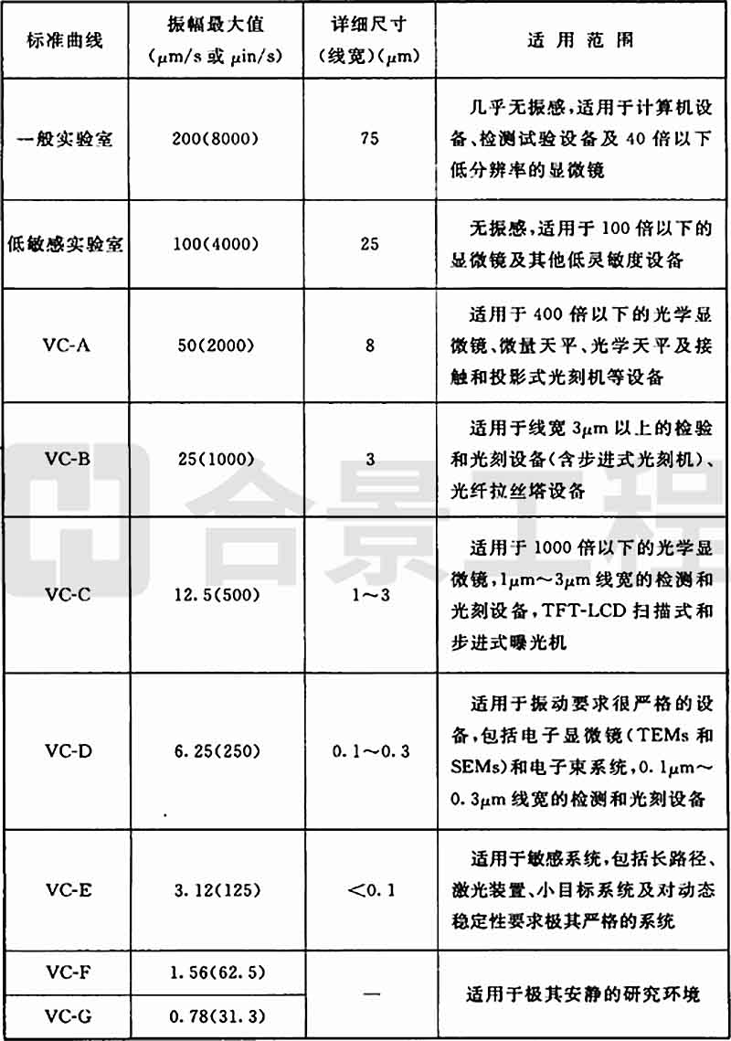 表A.0.2 精密設(shè)備、儀器容許振動標準曲線應用說明
